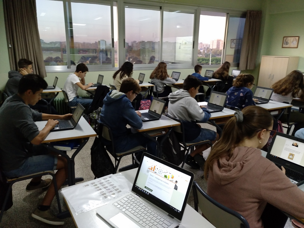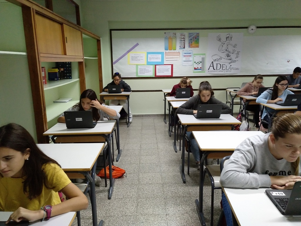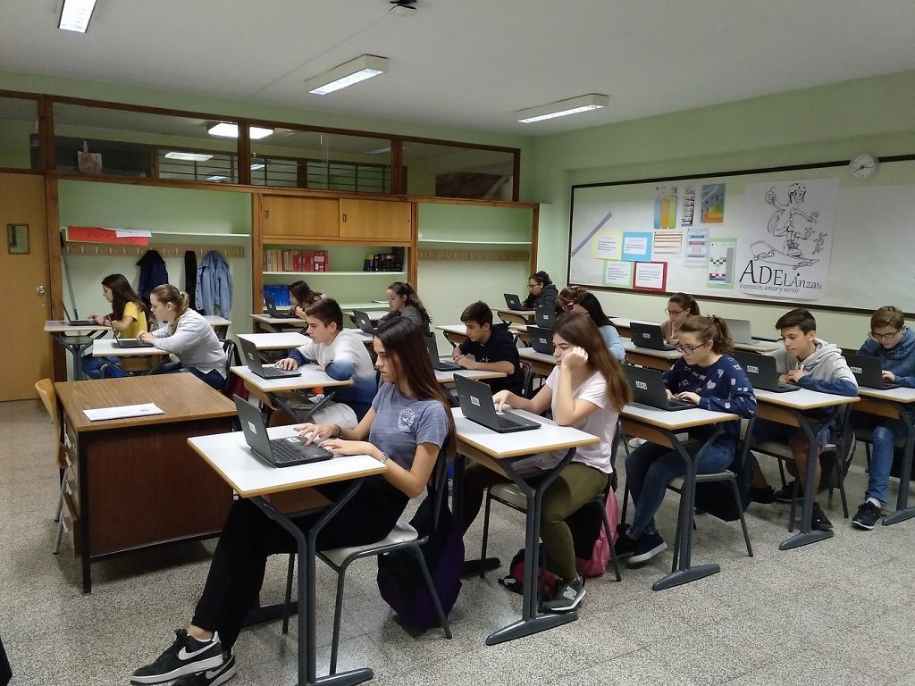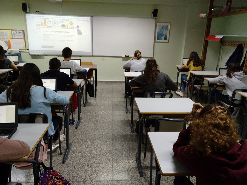 Los alumnos de IAEE (Iniciación a la Actividad Emprendedora y Empresarial) de 3ESO se examinan mediante un test sobre la teoría de las Inteligencias Múltiples de Howard Gardner utilizando los Chromebook.